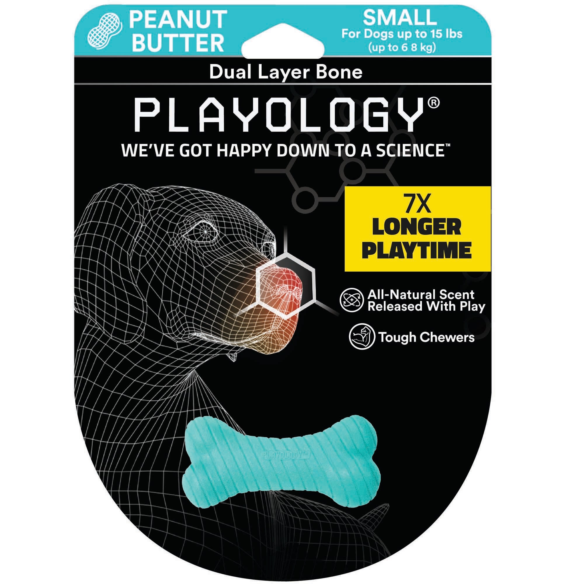Playology Dual Layer Bone Dog Toy Peanut Butter Scent Small Petco